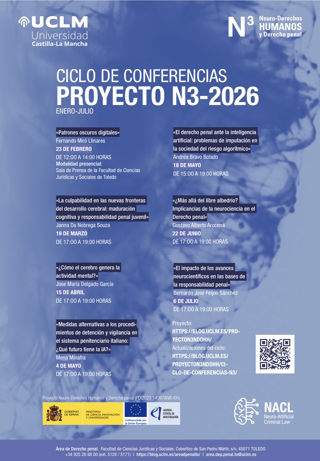 Ciclo de conferencias del Área de Derecho Penal y proyecto de investigación: «Neuro-derechos humanos y derecho penal» del que es IP el Prof. Dr. Eduardo Demetrio Crespo, para este año 2026. En dicho ciclo intervendrán numerosos expertos y referentes en la materia objeto de estudio.