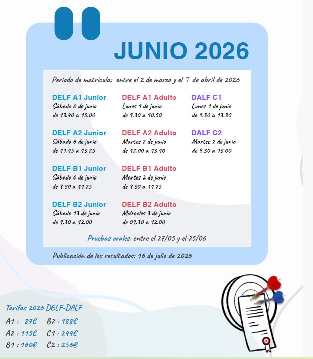 • Niveles DELF  A1, A2, B1 y  B2 Junior y Adulto en Albacete, Ciudad Real, Cuenca y Toledo