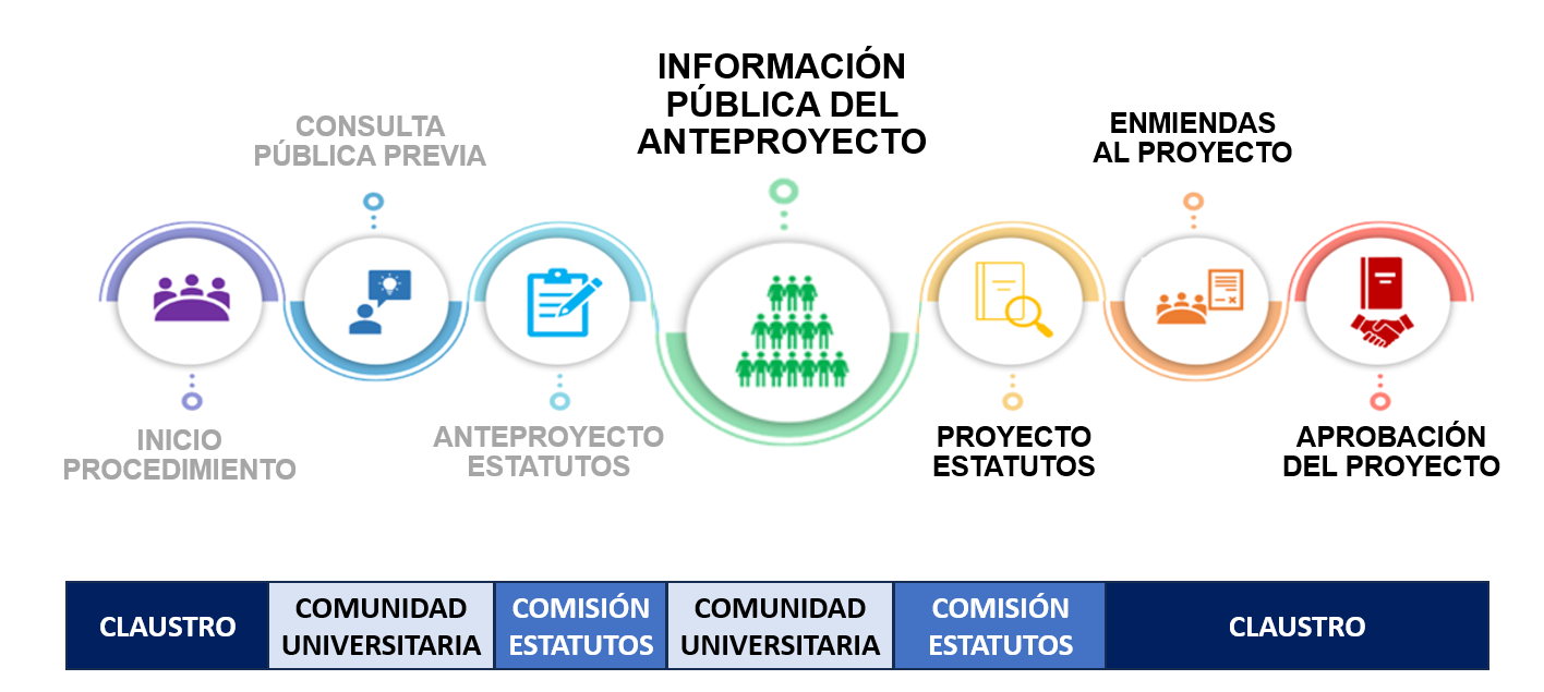 El Claustro Universitario en sesión celebrada el 13 de mayo de 2025 acordó el inicio del procedimiento de elaboración de los Estatutos de la UCLM, a propuesta del Rector. Asimismo, encomendó a la Comisión de Estatutos del Claustro la redacción del Proyecto de Estatutosconforme al siguiente procedimiento establecido para su elaboración: