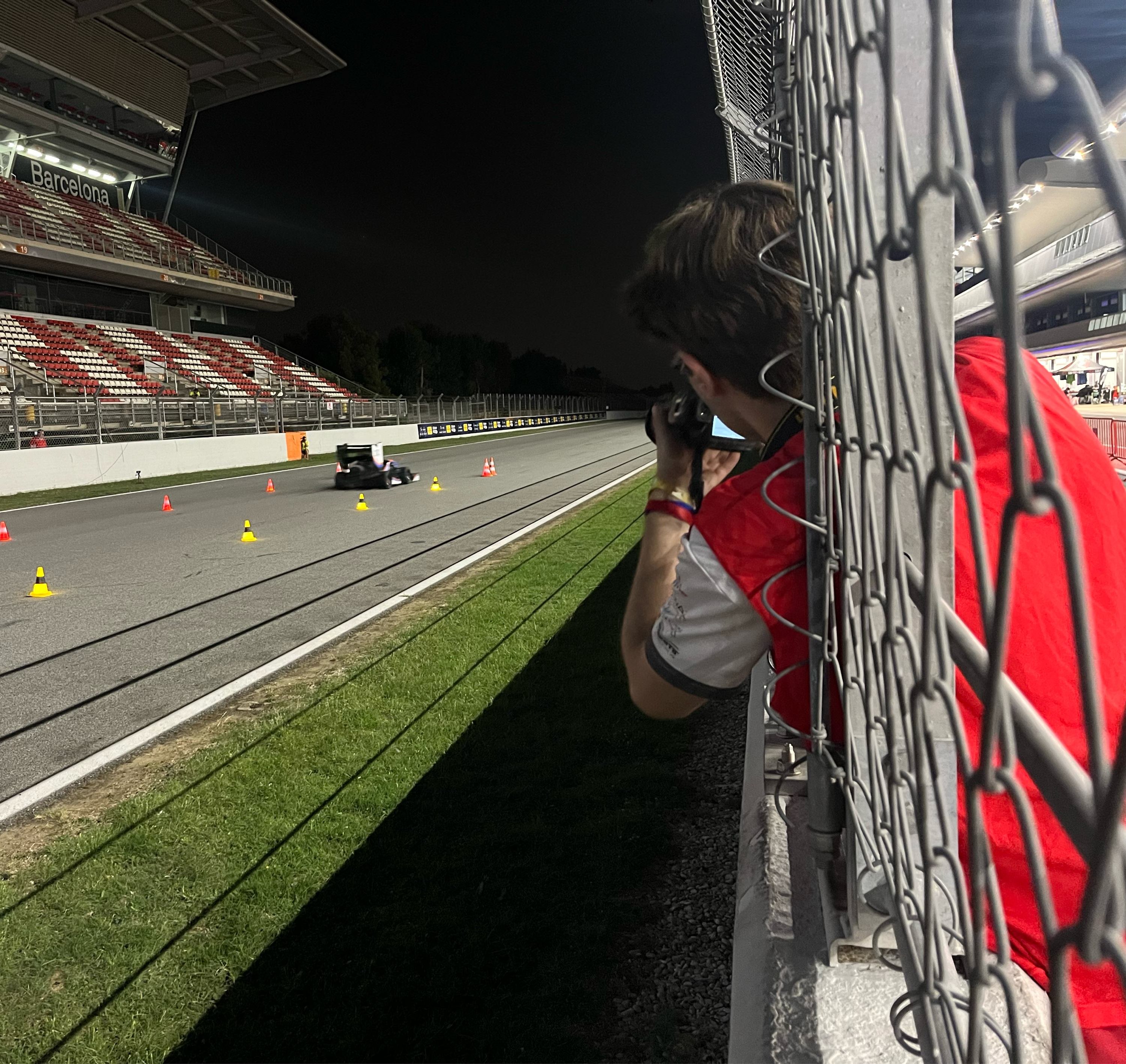Una parte fundamental de nuestro trabajo es el análisis de datos, en estrecha colaboración con el departamento de Electronics. A partir de los sensores instalados en el monoplaza, recopilamos información sobre aceleraciones, fuerzas, temperaturas, presiones y otros parámetros que nos permiten entender el comportamiento real del coche en pista. Estos datos son esenciales para validar los modelos teóricos, ajustar el set-up y mejorar el rendimiento vuelta tras vuelta.