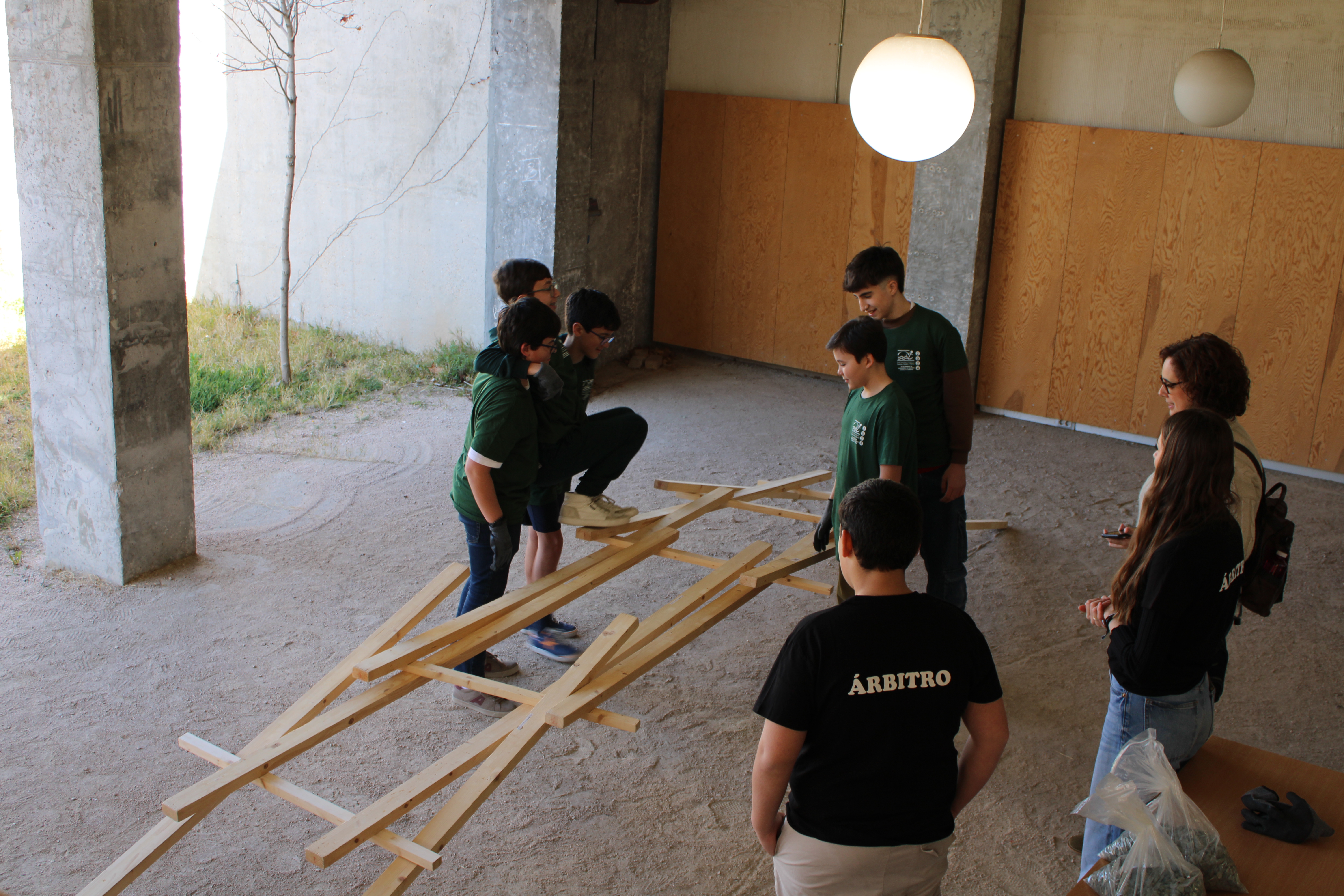 Se propone el clásico juego de la Jenga, pero al estilo de los ingenieros de caminos: ¡con grandes bloques de madera! La prueba consiste en construir una torre de bloques de madera de la mayor altura posible.