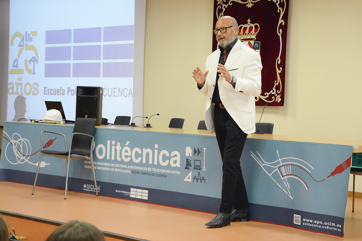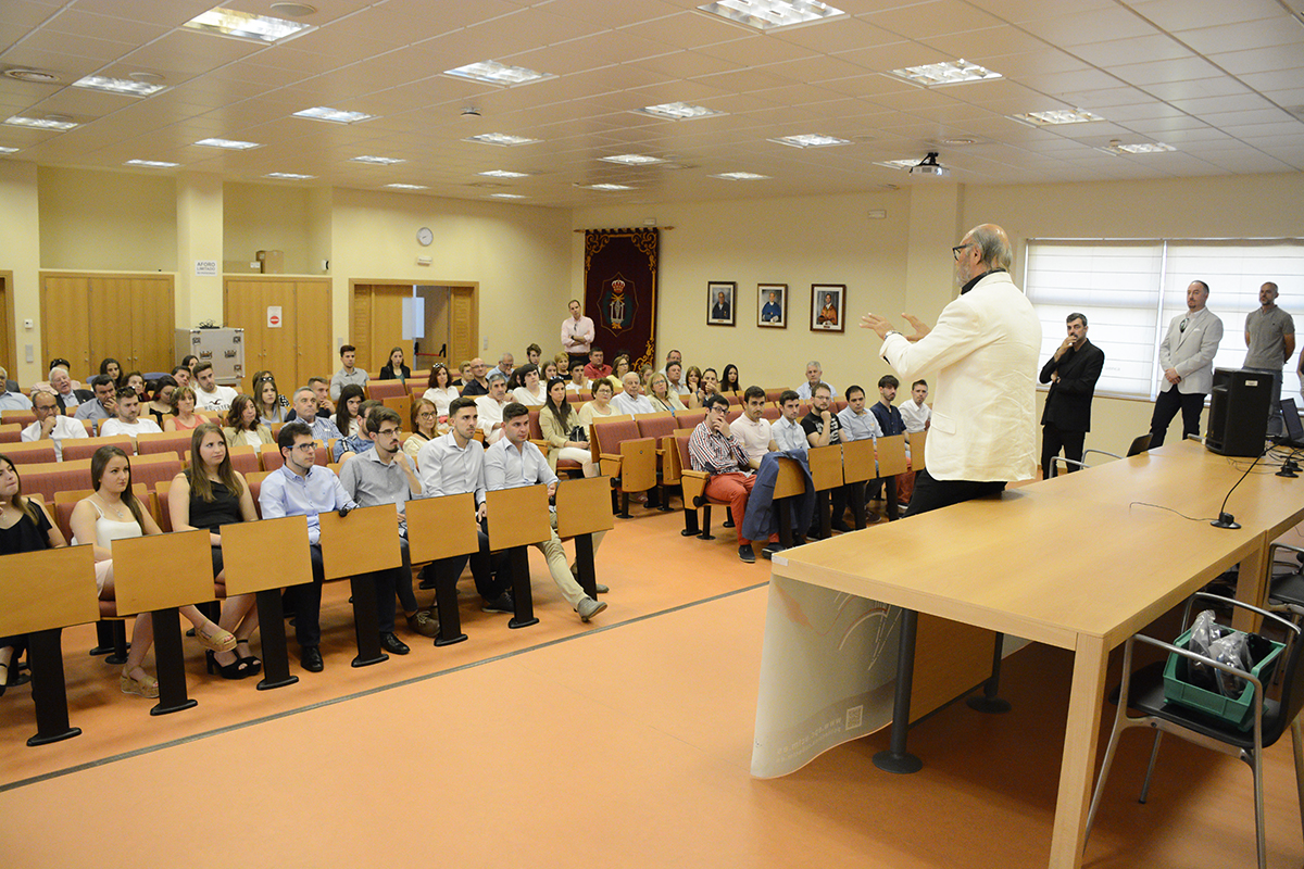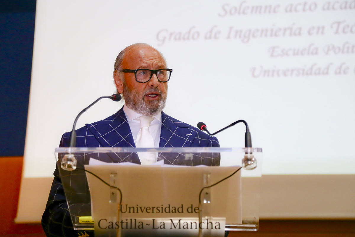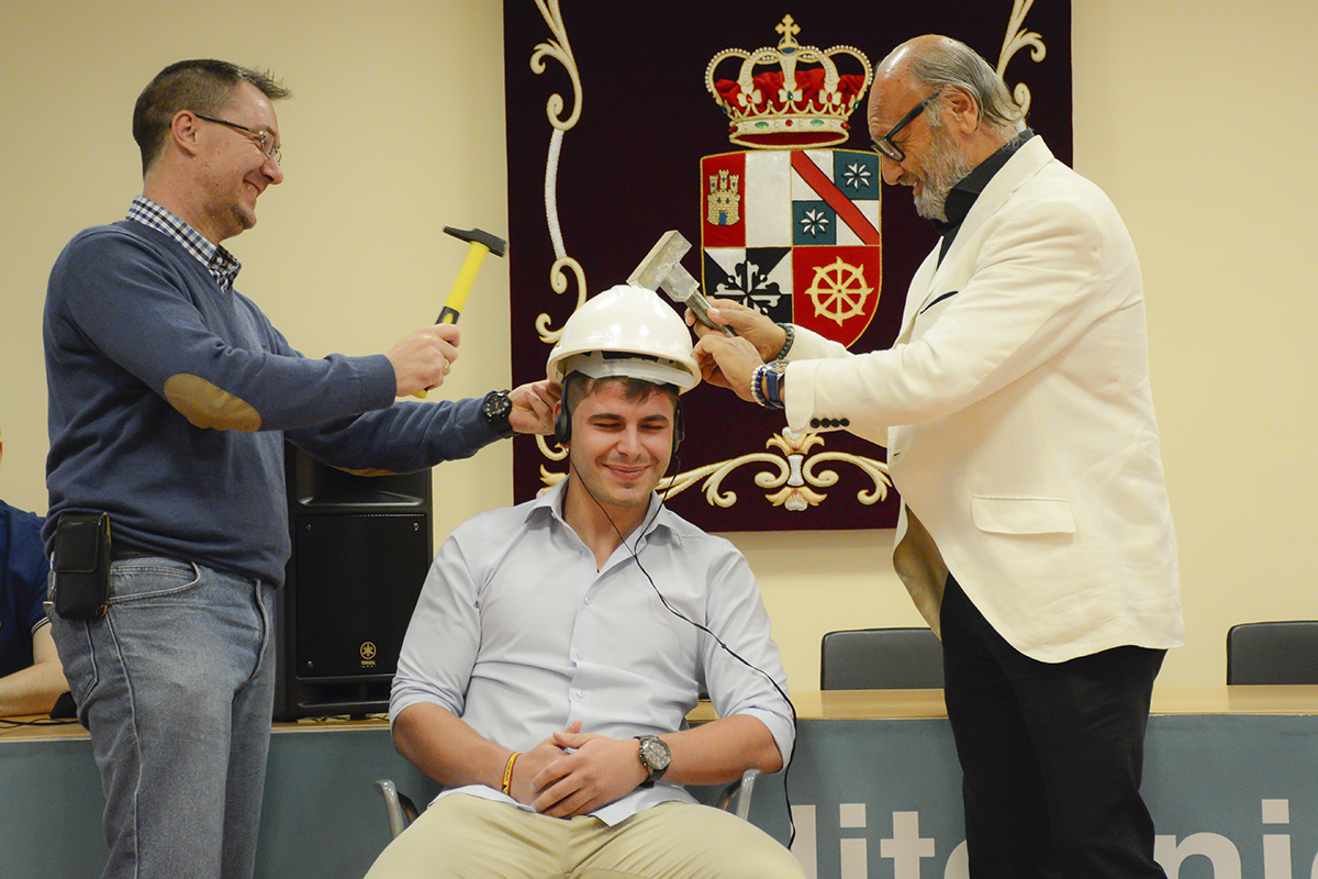 Este pasado sábado día 8 celebramos el Acto de Graduación de la promoción 2015-2019 de Graduados en Ingeniería de Tecnologías de Telecomunicación en la Escuela Politécnica de Cuenca. Por la mañana comenzamos con la célebre “Imposición de Cascos”, un primer acto de carácter informal pero muy emotivo, en el que una vez más ha quedado patente ese sentimiento familiar que es seña de identidad de nuestra Escuela desde sus orígenes. Este año hemos tenido el honor de incluir en nuestra familia al padrino de la promoción, Emilio Lanuza, Ingeniero de Telecomunicaciones y Director de Relaciones Institucionales de la empresa Teldat, con sede en Tres Cantos. Un verdadero profesional y excelente persona que nos ha cautivado a todos por su amplia experiencia empresarial, su carácter extrovertido, su estilo personal y por lo bien que ha conectado desde el principio con los alumnos de esta promoción y con la Escuela. En este acto ha sabido transmitirles como nadie la importancia de su actual etapa de formación universitaria y de las excelentes perspectivas laborales que sigue teniendo una profesión apasionante como es la Ingeniería de Telecomunicaciones, sin duda la más transversal del sector tecnológico.