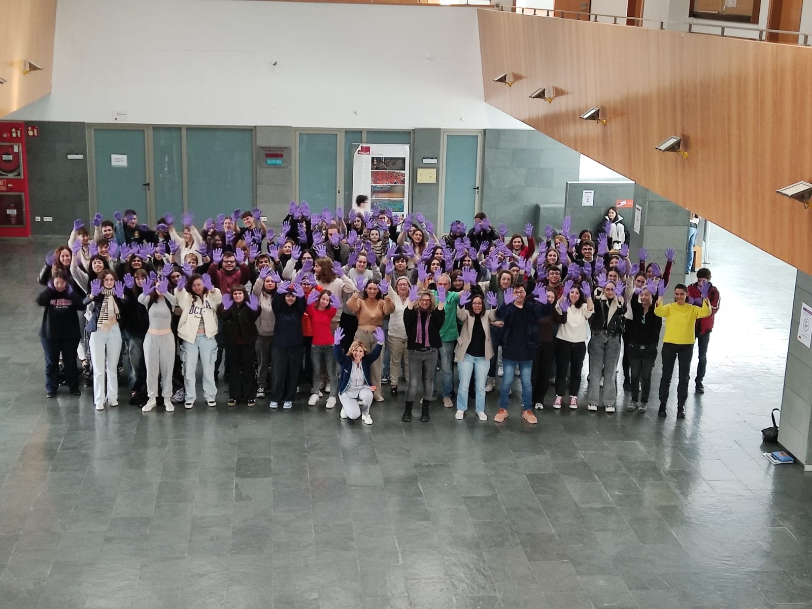 Panel espontáneo con guantes violetas como símbolo de la celebración del 25N. Os esperamos a las 11.00 horas, en el hall de la Facultad para el reparto de guantes y posterior realización de una foto bajo el lema: PARAR LA VIOLENCIA CONTRA LAS MUJERES ESTÁ EN MANOS DE TOD@S”. ¡Es importante vuestra colaboración!