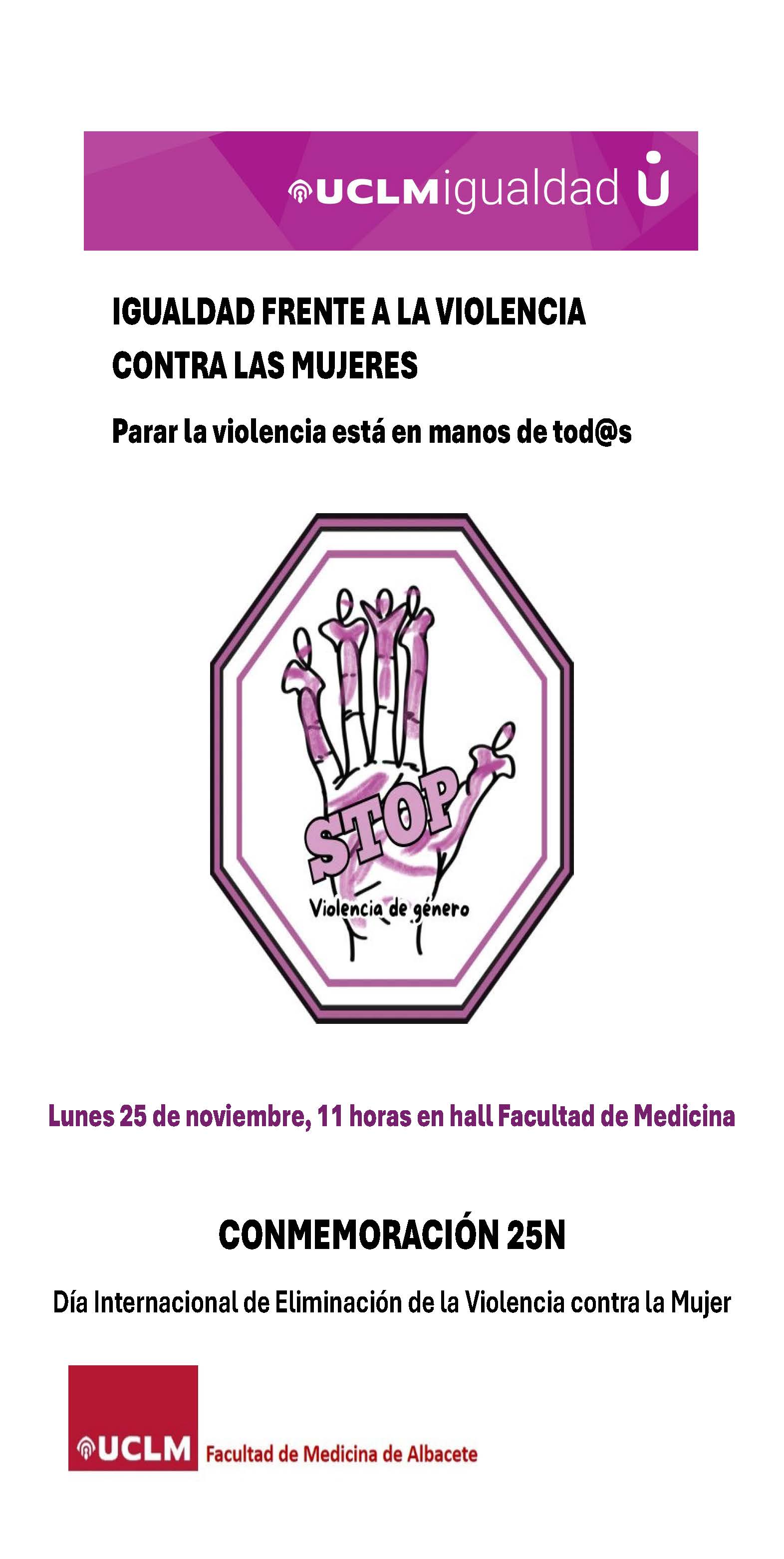 El próximo lunes, se conmemora el Día Internacional de Eliminación de la Violencia contra la Mujer en la UCLM. En la Facultad de Medicina, la Comisión de Igualdad ha organizado las siguientes actividades:
