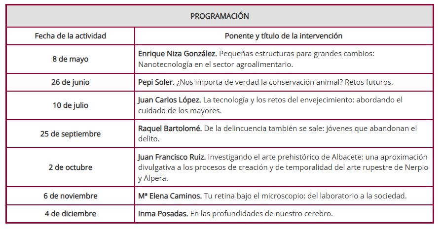 La organización de este ciclo es fruto de la colaboración entre la Universidad de Castilla-La Mancha (UCLM) y la Diputación Provincial de Albacete. Ambas instituciones firmaron en noviembre de 2024 un convenio marco de I+D que, entre otras acciones, contempla la realización de actividades de divulgación científica en el Chalet Fontecha. Este acuerdo busca fortalecer la conexión entre la universidad y la sociedad, facilitando el acceso al conocimiento y fomentando el interés por la ciencia en la comunidad local.