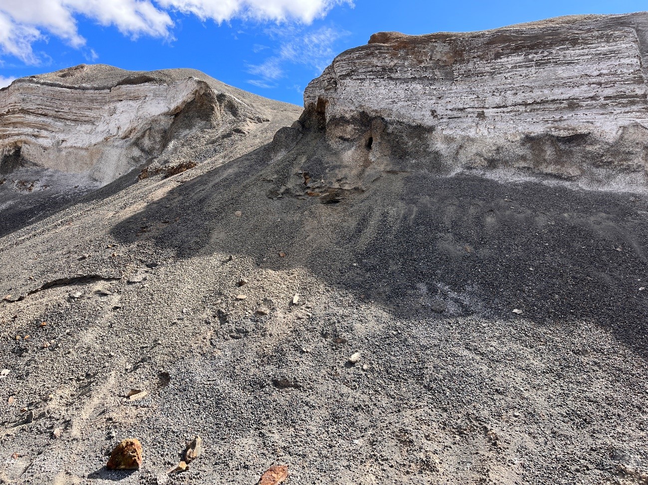 Aspecto de la galería de salida de drenaje de la escombrera de San Quintín Oeste en noviembre de 2023, tras un periodo largo de escasez de lluvias.
